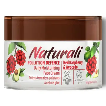 Naturali Pollution Defence Daily Moisturizing Face Cream 50 gm | With Red Raspberry & Avocado | Protects Against Pollutants | Restores Glow